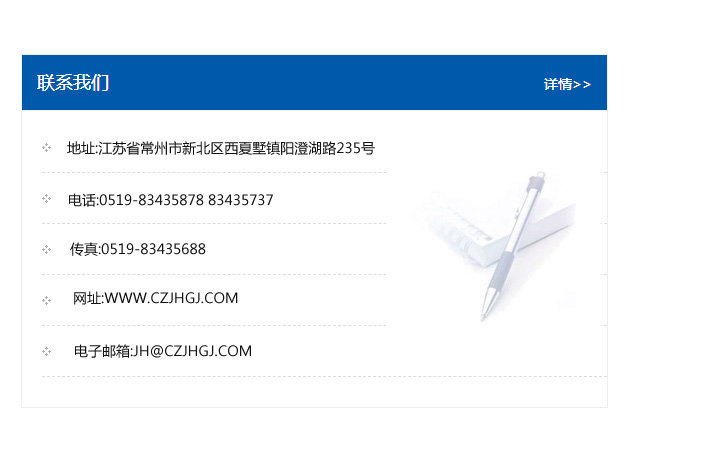 地址:常州市新北區友邦商務大廈1幢16、17層  電話:0519-85101652  傳真:0519-85112595  郵編:213022  網址:www_cz-jiayue_cn.nltccn.com  郵箱:xiajifengaa@163.com